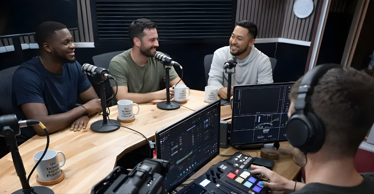 High-quality, fully equipped studios for podcasts, interviews and audio production