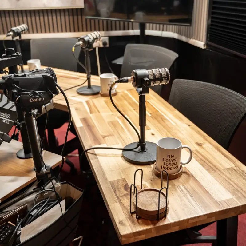 Our Debate Podcast Studio is built for conversation — accommodating up to four people with broadcast-ready audio and a setup that keeps every voice clear and balanced.